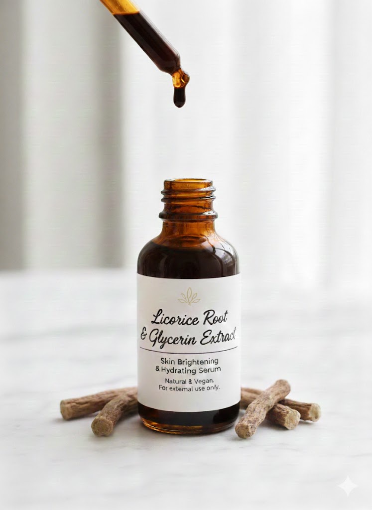 خلاصة عرق السوس بالجلسرين هي مزيج من خلاصة نبات عرق السوس (المعروف بفوائده التفتيحية والمهدئة للبشرة والمعدة) مع الجلسرين (مرطب طبيعي قوي). هذا المزيج يُستخدم بكثرة في منتجات العناية بالبشرة لتوحيد اللون وتفتيح البقع وترطيب البشرة بعمق، بينما يُستخدم في مكملات الجهاز الهضمي في شكل منزوع الجليسرين (DGL) لتهدئة المعدة دون رفع ضغط الدم.