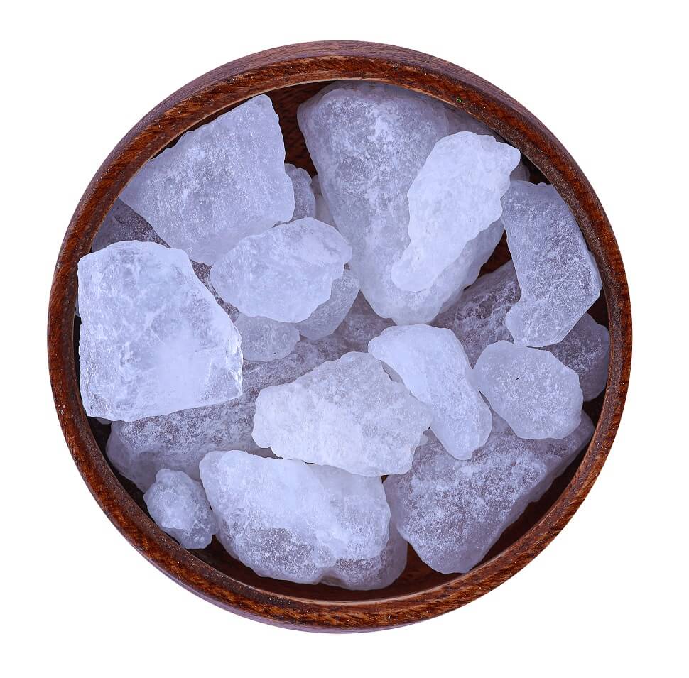 حجر الشبة (كبريتات الألومنيوم والبوتاسيوم). تُستخدم الشبة في العديد من المجالات، بما في ذلك العناية بالبشرة، وإزالة الروائح الكريهة، وتصفية المياه.